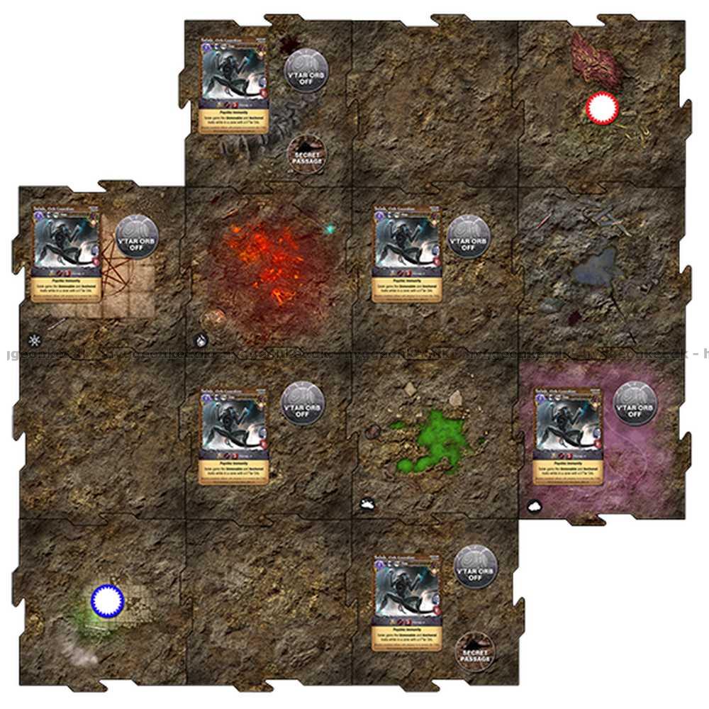 Battlegrounds Domination is a new set of expansions for Mage Wars Arena that introduce new rules to play by and incorporate the use of custom puzzle-cut tiles for players to build their own Arena boards to play on! And there are images on the tiles that are accompanied by optional rules that introduce terrain effects as well!