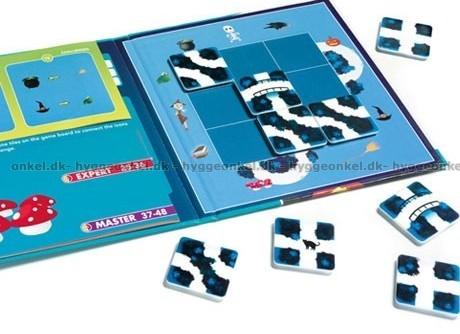 Magic Forest logikspel har magnetiska brickor. Spelet är enkelt att ta med i väskan om man önskar lite underhållning på resan.