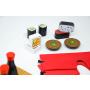 Varje lag ska ha en sushimatta, ett sushiset som består av olika ingredienser till sushin och en mask. Frågan är vilket lag som är snabbast på att laga till måltiden?
