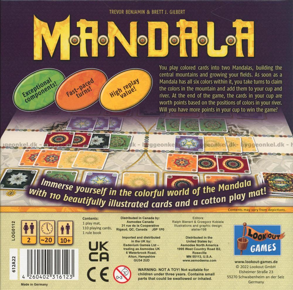 Mandala är ett taktiskt kortspel för två personer, i vilket spelarna ska försöka samla de mest värdefulla korten och på det viset tjäna flera poäng än sin motspelare.