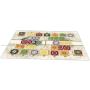 Spelbrädet är lite speciellt i och med att det är tillverkat av tyg. Det är indelat i olika områden på vilka mandalan ska byggas upp. Det finns plats för två mandala på tyget. En färdig mandala måste bestå av kort i alla sex färger.