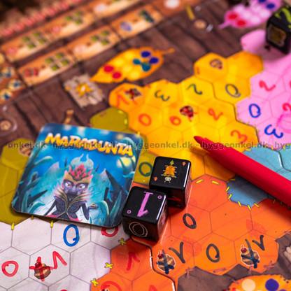 Marabunta är ett strategiskt brädspel där två spelare kämpar om att etablera och utvidga sina myrkolonier i ett gemensamt territorium. I spelet ska du fördela tärningar och brickor för att skicka ut dina myror, inta nya områden, samla resurser och uppnå speciella krafter genom "crates" och "cupcakes", som belönar dig med segerpoäng.