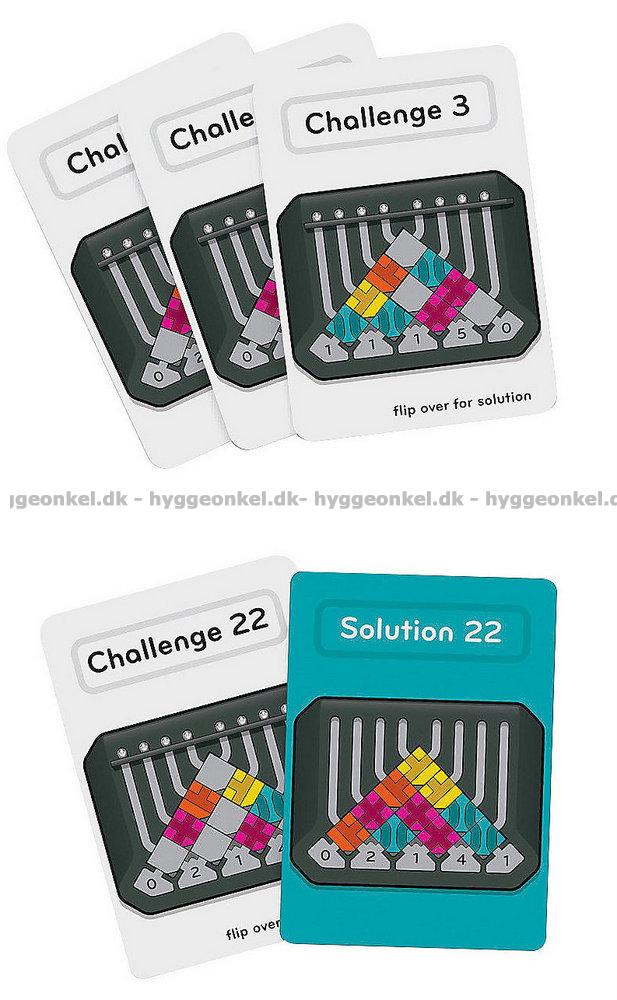 Välj ett kort med en utmaning och lägg brickorna på spelplattan enligt instruktionen/bilden.