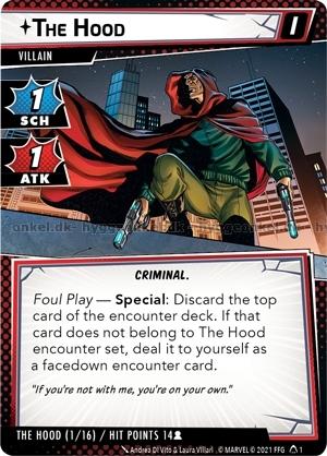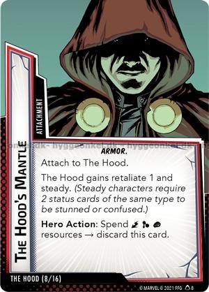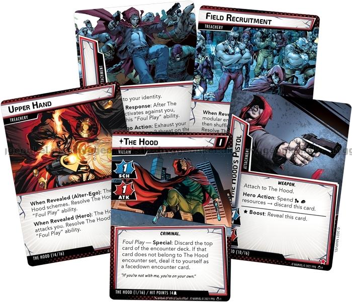 Med expansionen The Hood får du fler kort att använda i Marvel Champions - The Card Game.