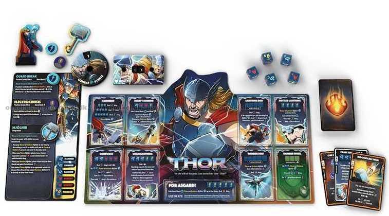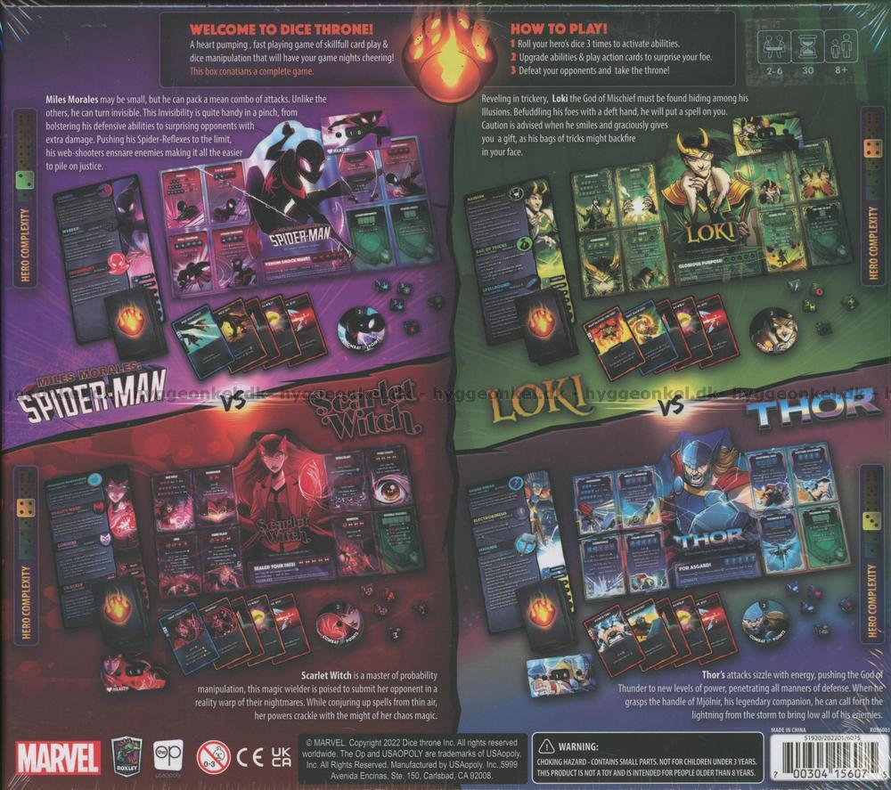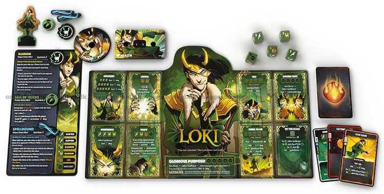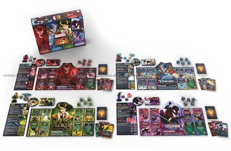 Välj en av fyra unika hjältar – Spider-Man, Scarlet Witch, Loki eller Thor. Aktivera din hjältes speciella förmågor genom att använda kombinationer av tärningar. Uppgradera din hjältes förmågor under spelets gång. Spela kort för att manipulera tärningarna och överraska din motståndare. Gå segrande ur striden och ta tronen!