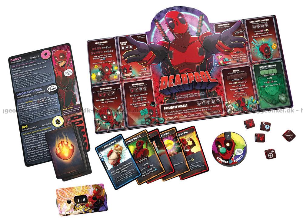 Ta rollen som den galna och charmiga Deadpool, komplett med egna tärningar, spelbräde och en unik kortlek.