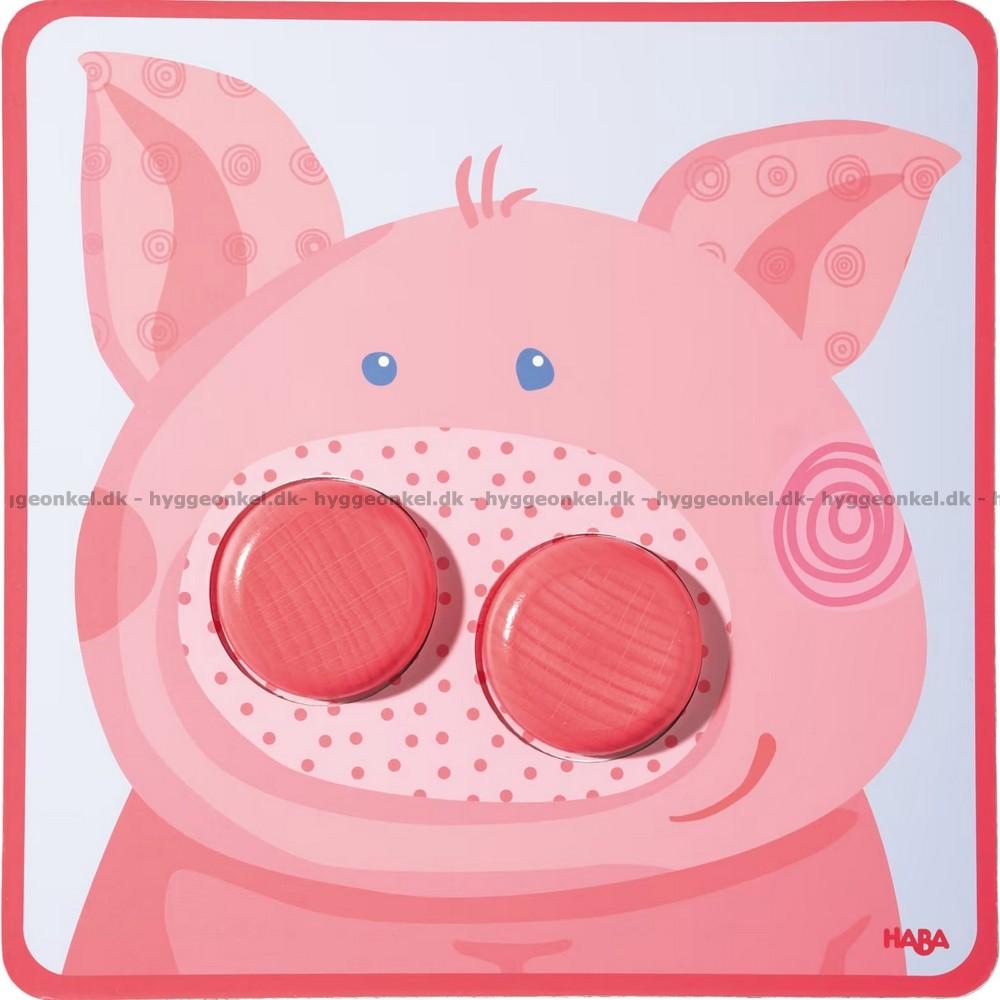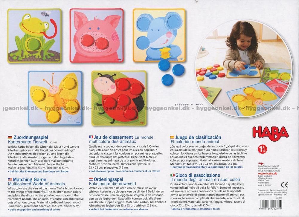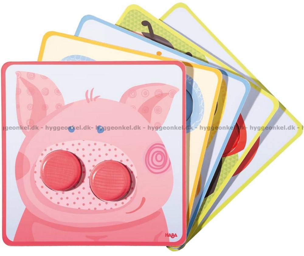 Det finns en spelplatta till varje djur och man kan träna på färgerna röd, grön, blå, gul och rosa.