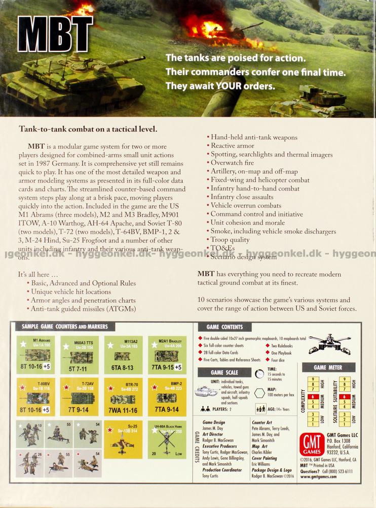 MBT är ett modulärt spelsystem för två eller fler spelare. Stridssystemet ger ett högt tempo och striderna sker på ett slagfält med både pansarvagnar, flyg och marktrupper.