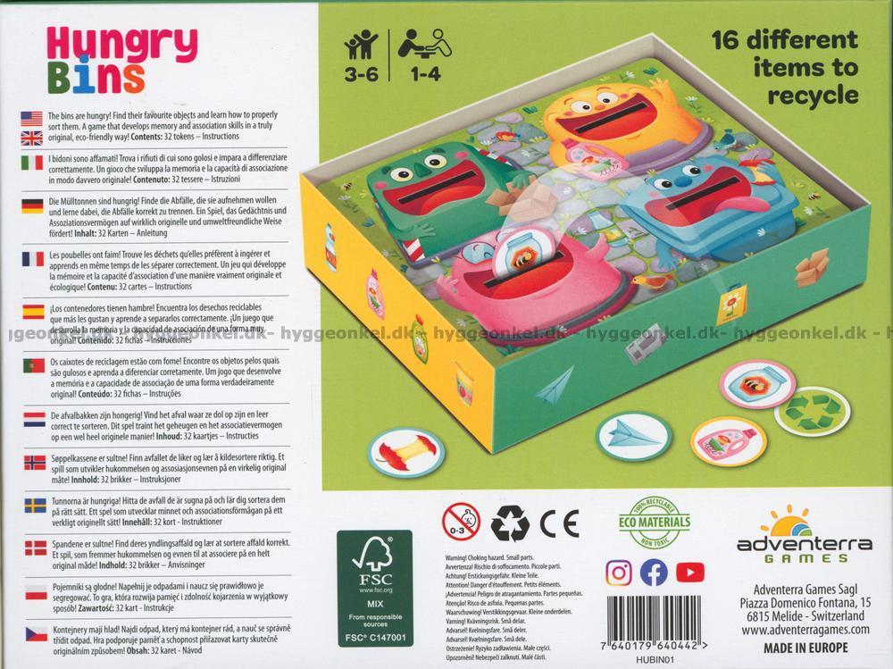 I denna version följer 4 "avfallstunnor" (brickor i kartong) med. När man har fått ett par/stick kan man stoppa den ena brickan i den rätta avfallstunnan och därmed öka sin medvetenhet om vikten att sortera sitt avfall.
