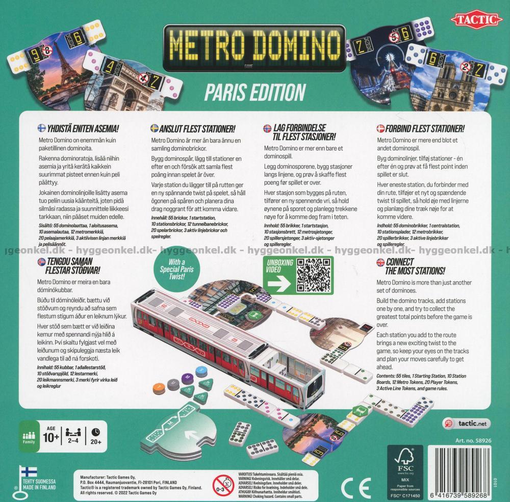 I Metro Domino spelar man med nya tag, då spelet innehåller Paris mest ikoniska stationer, som tillför spelet nya händelser och spänning.