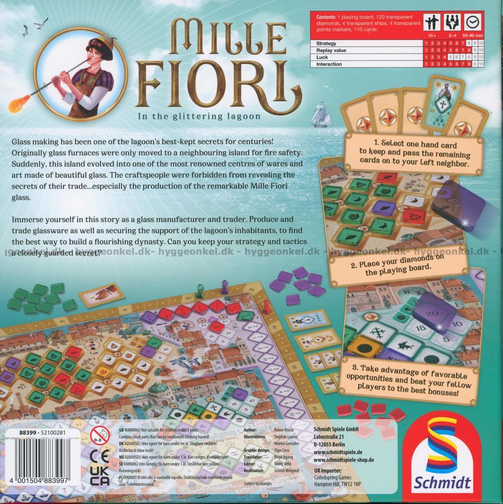 I Mille Fiori får man rollen som glastillverkare och glashandlare vid en lagun. Där ska man försöka tjäna så mycket som möjligt på sin produktion av glaskonst.