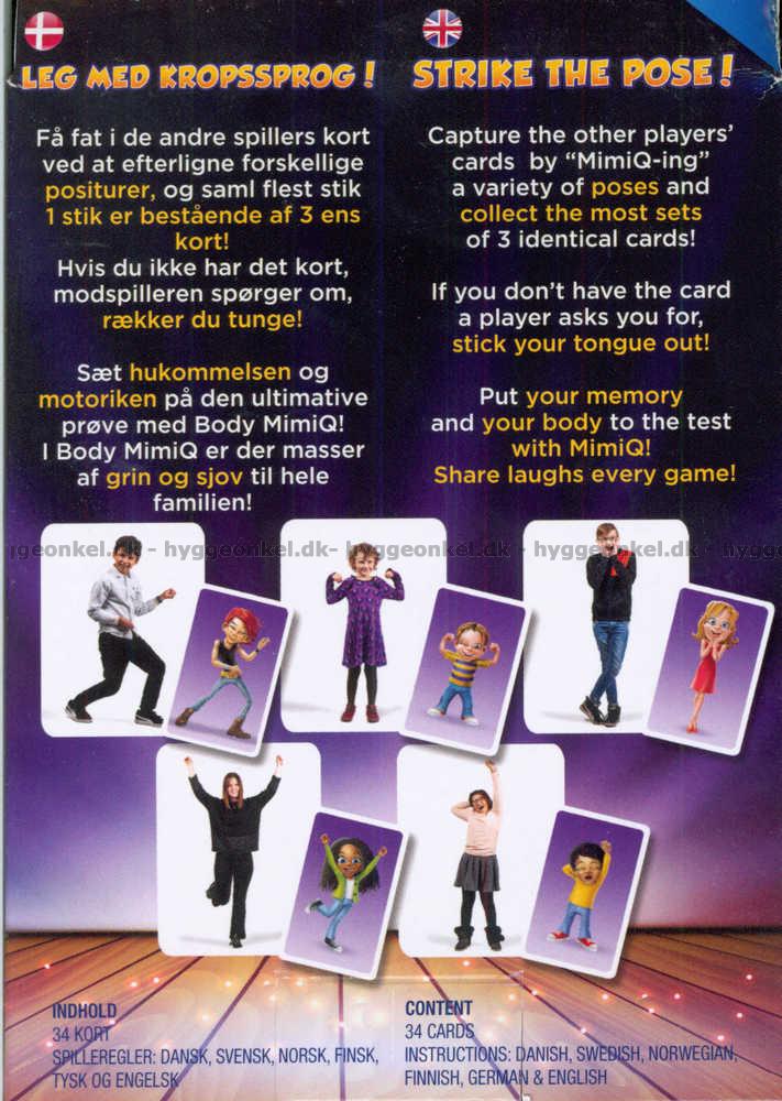 Förutom att det alltid är roligt att spela kortspel, är MimiQ - Kroppen ett lärorikt spel på många sätt. Man övar sig till exempel på att göra olika uttryck med kroppen. Man tränar också på att hålla kort på hand, vänta på sin tur, lyssna och komma ihåg vad de andra spelarna frågar efter, med mera. Dessutom är det förmodligen till stor glädje för barnen att de får räcka ut tungan till mamma eller pappa!