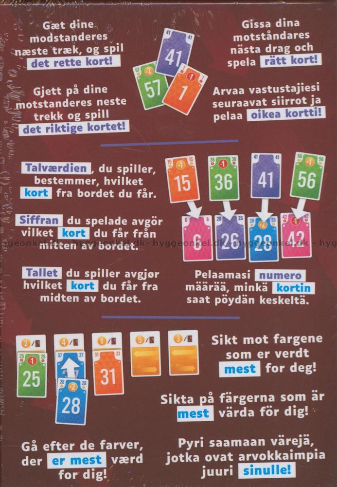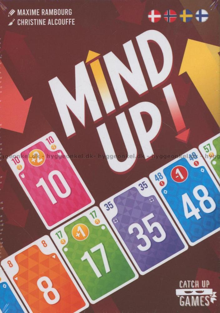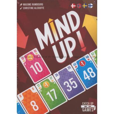 Mind Up! är ett underhållande kortspel som lämnar dig med mersmak. Spelet börjar med en rad kort på bordet, motsvarande antalet spelare. Varje spelare väljer ett kort från sin hand och avslöjar det samtidigt för att bilda en ny rad precis nedanför, rangordnad från lägsta till högsta värde. Spelarna tar sedan kortet direkt ovanför det de just spelade och lägger till det i sitt tableau. Dessa kort ger poäng vid rundans slut beroende på deras färg och i vilken ordning de valdes.