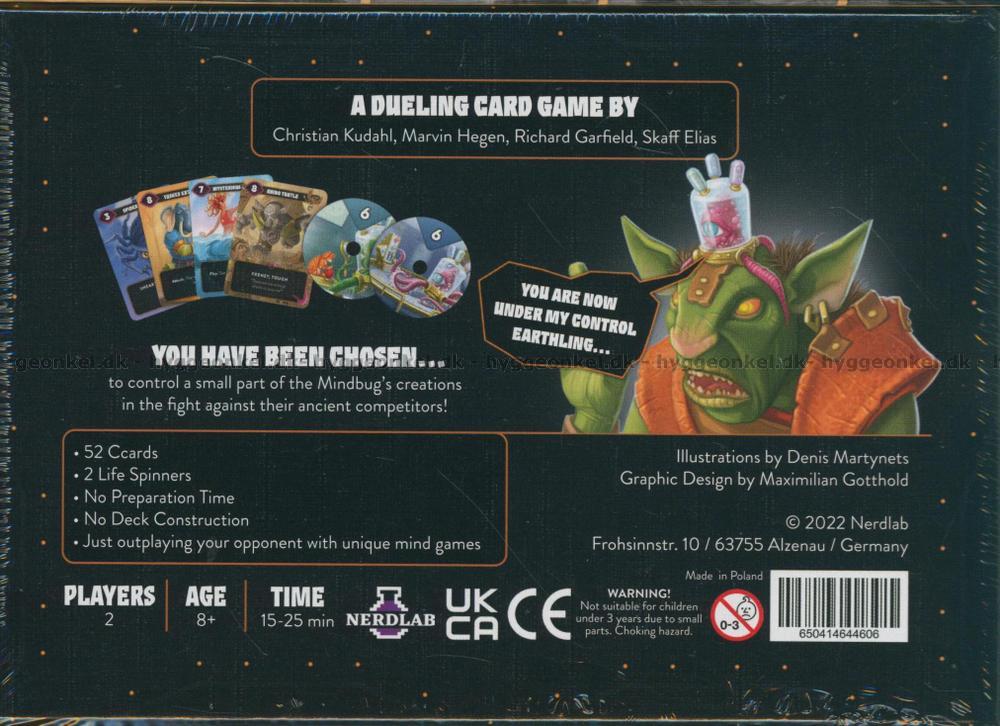 Det speciella med Mindbug är att varje spelare har två Mindbug-kort. Det är kort som ger en spelare möjligheten att stjäla det kort som motståndaren precis har spelat.