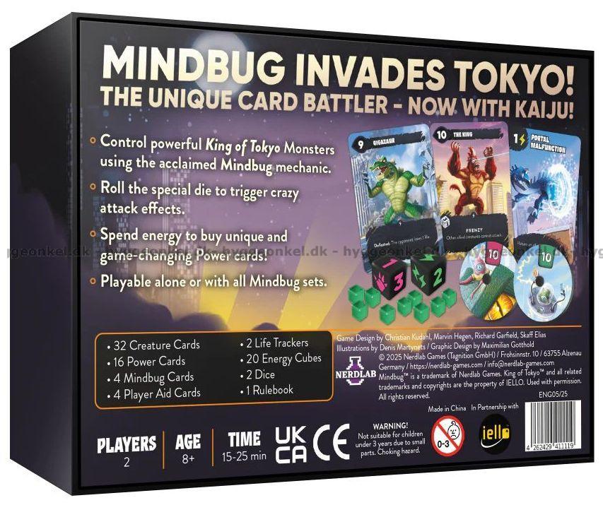 King of Tokyo möter Mindbug. I detta fristående spel tar du kontroll över ikoniska monster och kastar dig ut i taktiska strider fulla av överraskningar. Med ett speciellt tärningskast kan du utlösa vilda attackeffekter, medan energi används strategiskt för att skaffa unika kraftkort som kan vända hela striden på ett ögonblick.