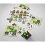 Träblock, kort, marker och brickor i kartong.