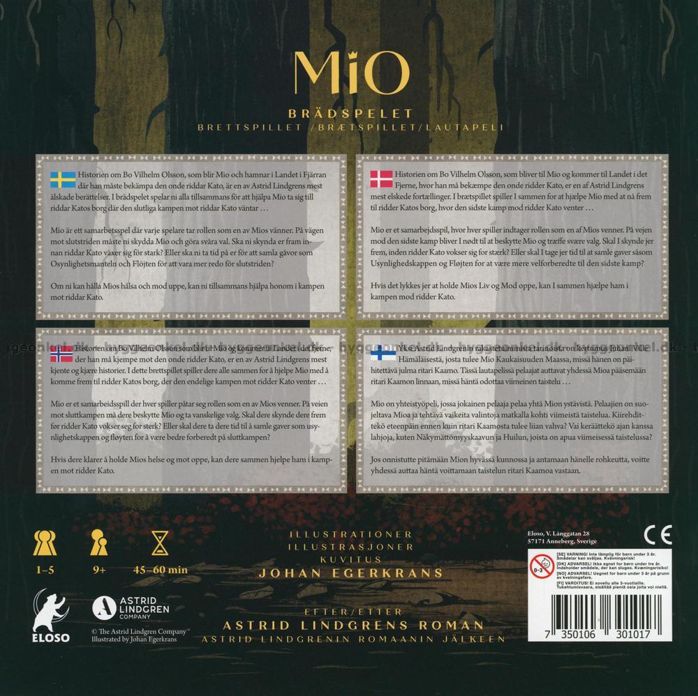 Brädspelet Mio är baserat på Astrid Lindgrens klassiker Mio min Mio, i vilken man följer pojken Bo Vilhelm Olssons resa som tar honom till det magiska landet i fjärran.