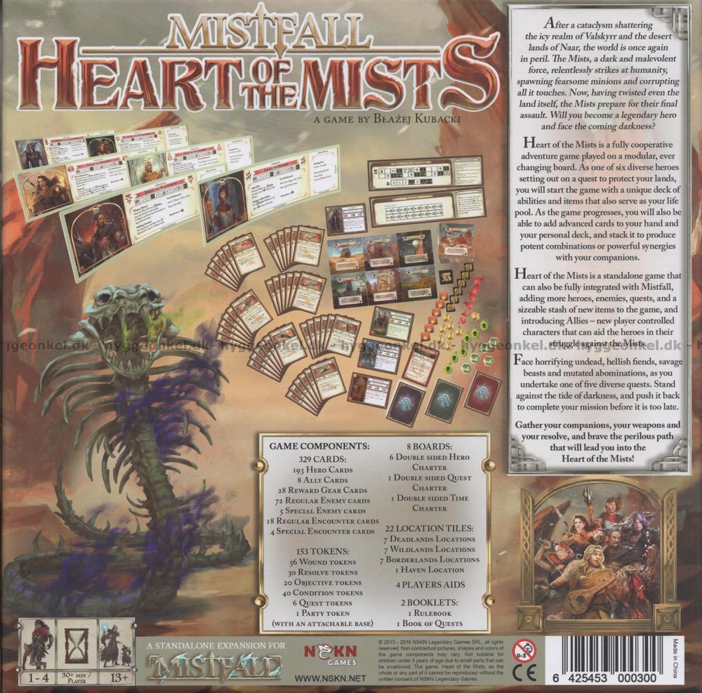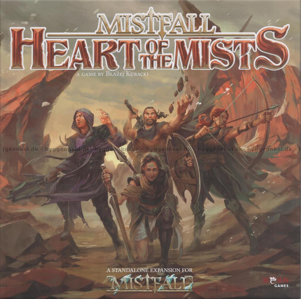 Mistfall: Heart of the Mists är ett kooperativt kortbaserat spel i en värld full av mystik, magi och farofyllda äventyr. Heart of the Mists fortsätter historien från spelet Mistfall i en fristående expansion med nya hjältar, fiender, händelser och uppdrag. Spelet introducerar också allierade samt alternativa versioner av några av spelets grundmekaniker.