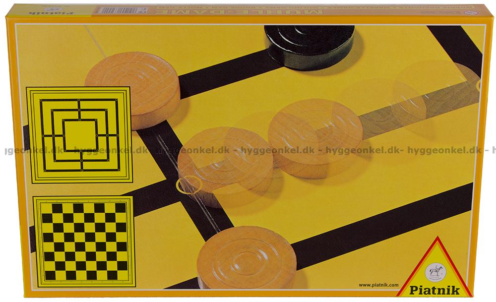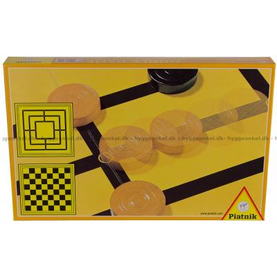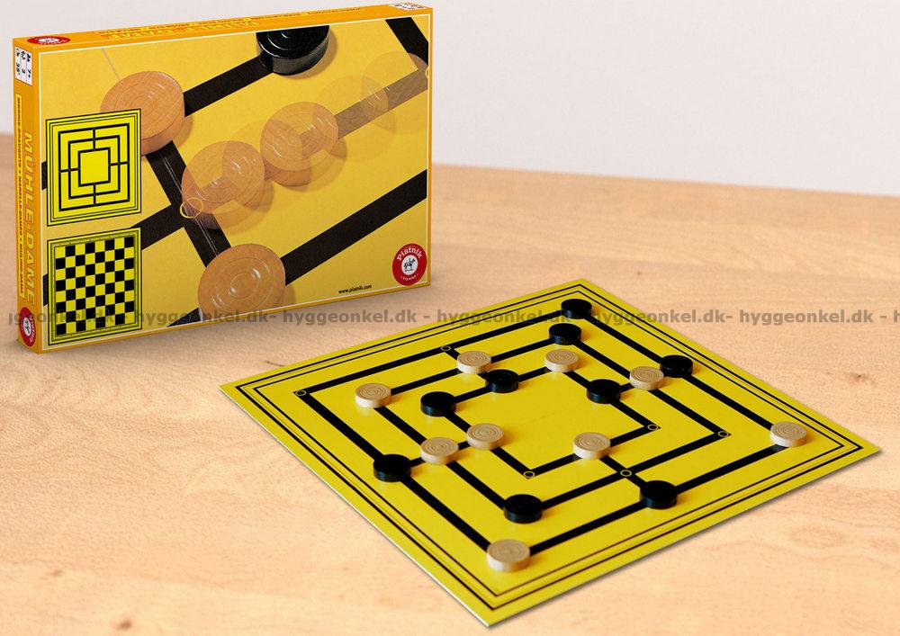 Vändbart spelbräde - på den ena sidan spelar du "dam", på den andra "kvarnspel".