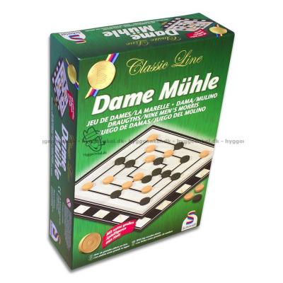 Vändbart spelbräde - på den ena sidan spelar du "dam", på den andra spelar du "kvarnspel".