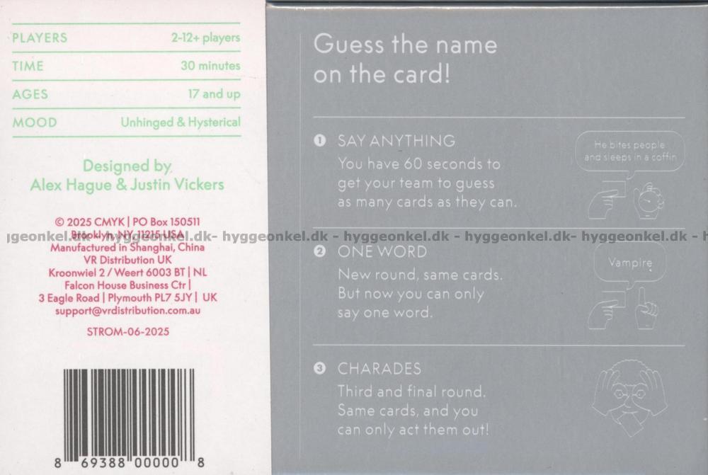 Spelet sträcker sig över tre omgångar, där reglerna för hur du får ge ledtrådar ändras – men oroa dig inte, samma kort används i alla omgångar.