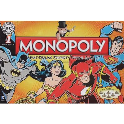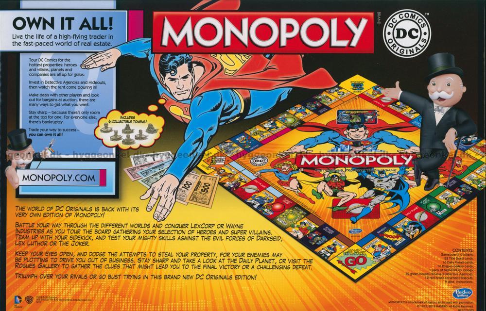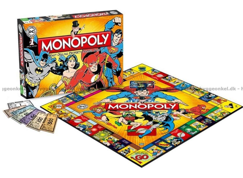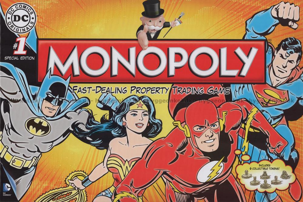 Här är Monopol i en specialutgåva med tema DC Comics – få tag på de bästa fastigheterna, köp flest möjliga superskurkar och superhjältar men även planeter och företag som LexCorp och Wayne Industries. Allt är till salu!