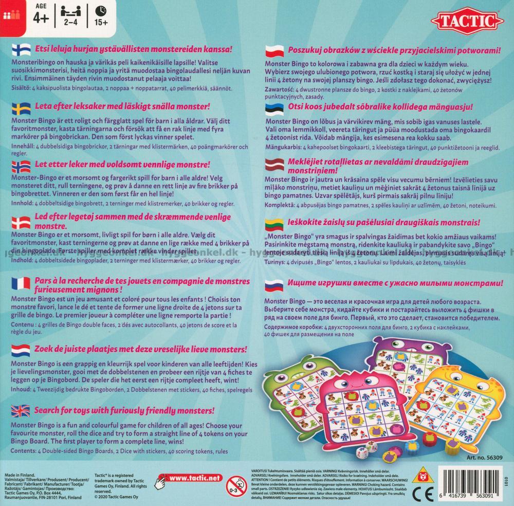 Tillsammans med de små monstren ska man leta efter leksaker. Monstren utgör själva spelplattorna/bingobrickorna. Slå med tärningarna och se vad de visar!
