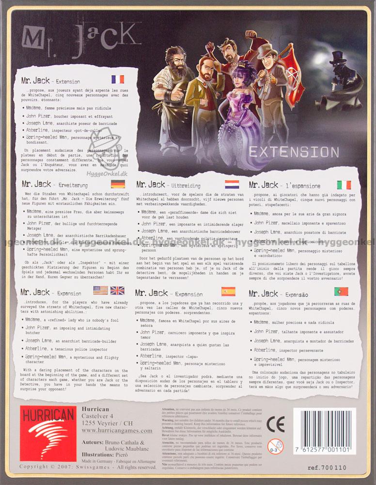 Denna expansion till Mr. Jack ger dig fem nya figurer och några alternativa regler. Kan inte spelas fristående.