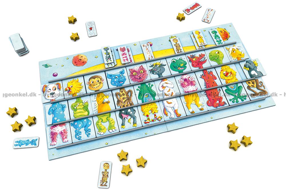 1 spelbräde - 30 brickor (10 av varje: huvud, kropp respektive ben) - 30 djurkort - 1 spökkort - 12 stjärnor i trä.