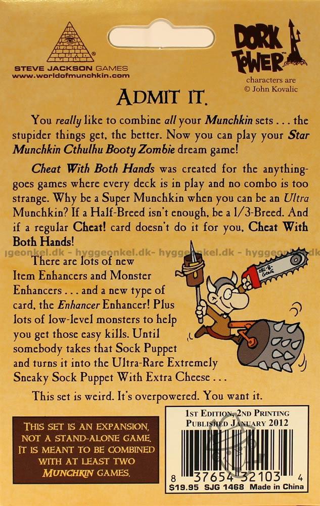 Cheat With Both Hands är en av de populära expansionerna till Munchkin grundspel (världens roligaste spel!).