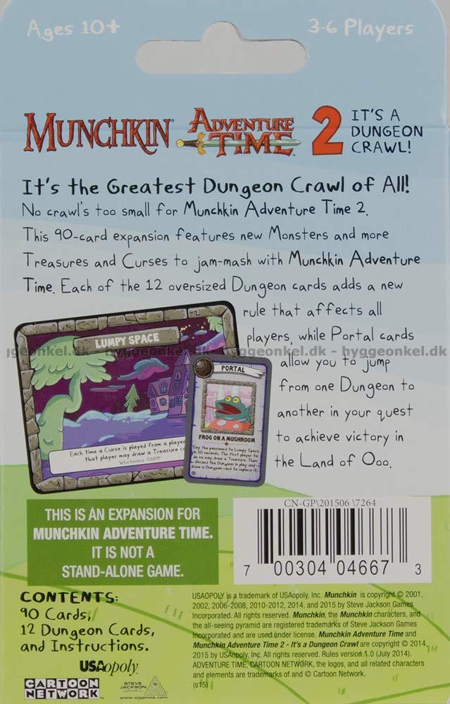 Munchkin Adventure Time 2: It's a Dungeon Crawl! är en liten expansion till Munchkin. Den är självklart designad för att vara en expansion till Munchkin Adventure Time, men kan som alltid givetvis kombineras med något av de andra Munchkin-spelen.