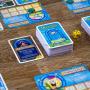 Asken innehåller 168 kort, 1 tärning och 6 karaktärskort.