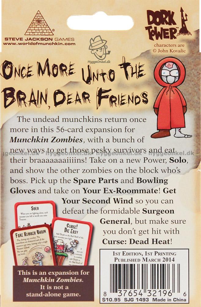 De odöda Munchkins tittar in igen i denna expansion till Munchkin Zombies med 56 nya kort. Du får mängder av nya sätt att sätta fingrarna i de läckra överlevande och framför allt deras hjärnor.