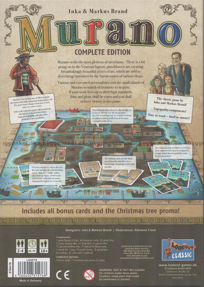 Murano är en liten ögrupp med 7 öar belägen nära Venedig. Öarna separeras av kanaler, så gondoler är givetvis helt centrala i detta spel.