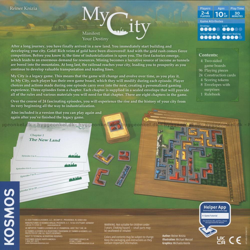 My City är ett legacy-spel, det vill säga att det ändrar sig och utvecklar sig under det att ni spelar igenom serier av spelet. Varje serie består av tre episoder, som utgör ett kapitel. Spelet innehåller allt som allt 8 kapitel. De val man gör har effekt på de efterföljande episoderna.