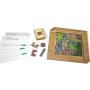 Spelbräden, brickor i kartong, kort, marker och kuvert.