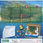 Spelbräden, brickor i kartong, kort och kuvert med överraskningar.