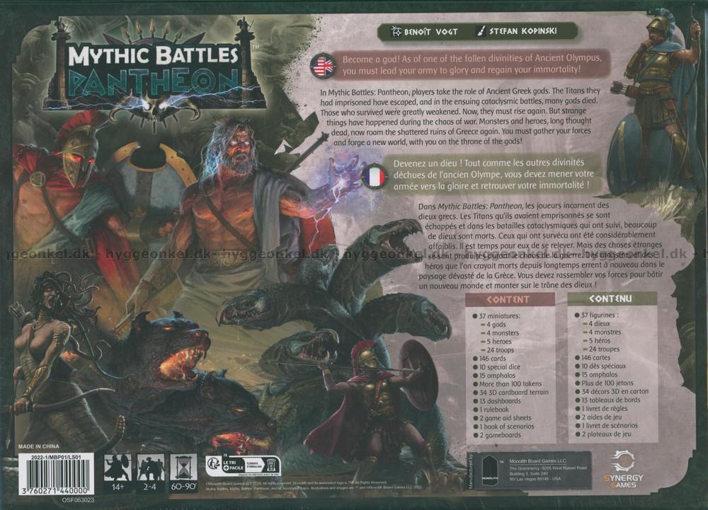 Mythic Battles: Pantheon är ett spännande brädspel fyllt med action som är baserat på grekisk mytologi. I spelet får man möta stora grekiska gudar, hjältar och farliga monster, men också helt vanliga trupper.
