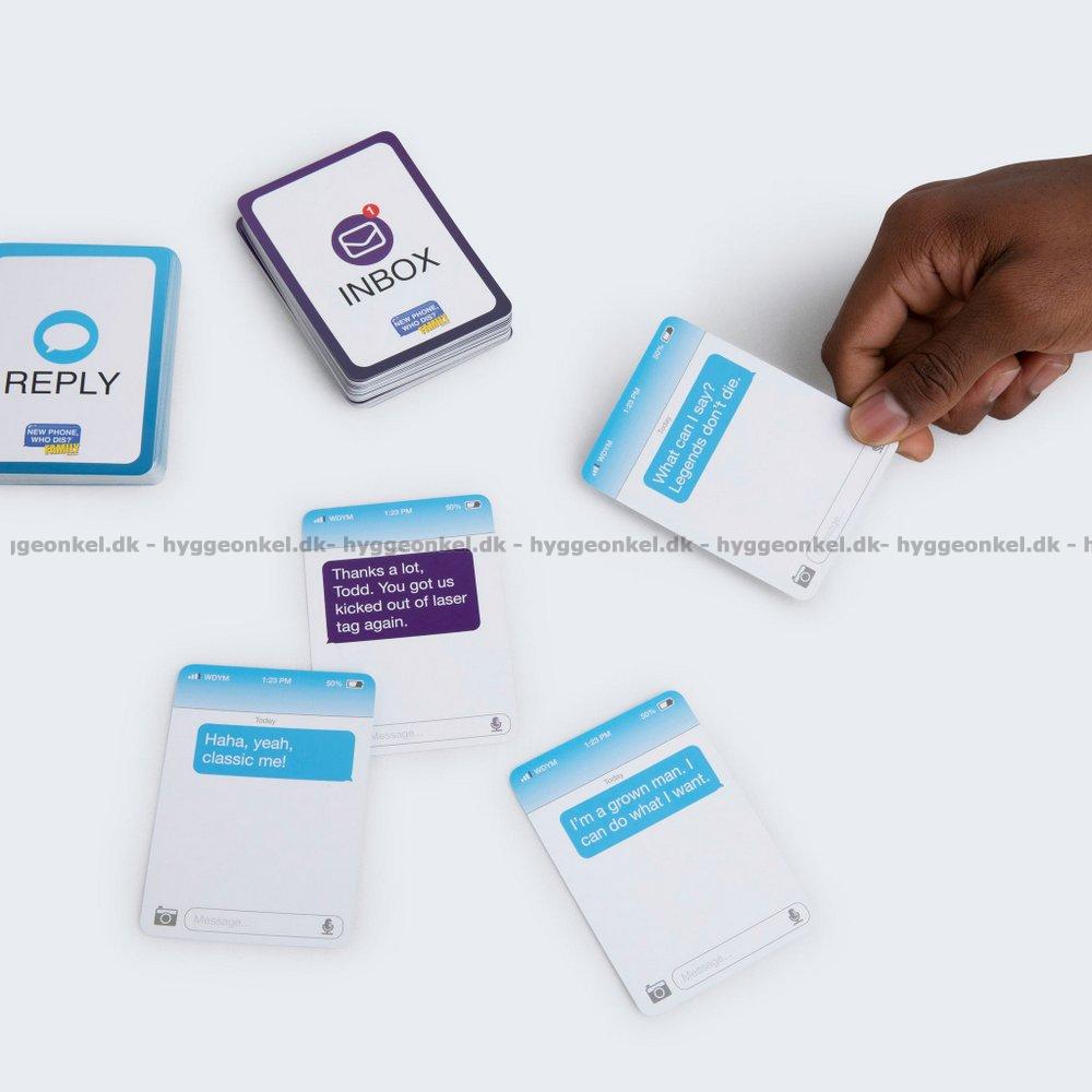 Spelarna turas om att ta ett meddelandekort medan de andra spelarna tävlar om att spela det roligaste svarskortet till meddelandet.