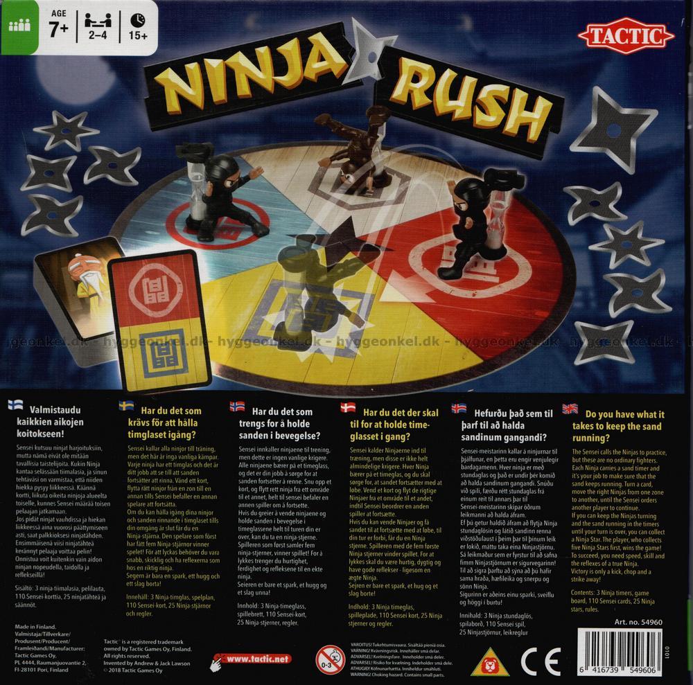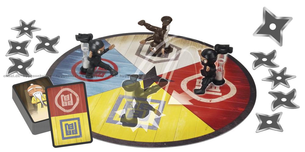3 ninja timglas, spelbräde, 110 senseikort och 25 ninjastjärnor.