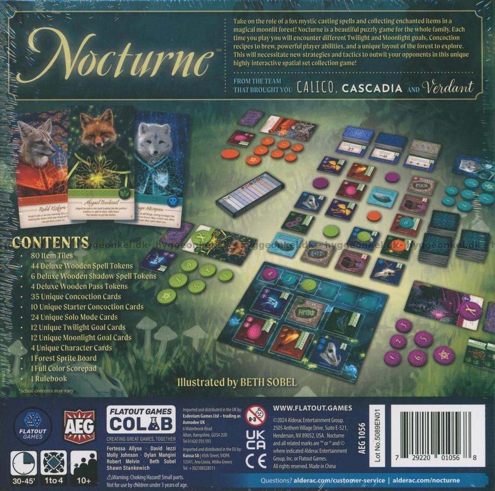 Nocturne är ett strategiskt brädspel där spelarna tar rollen som listiga rävar som försöker samla magiska föremål i en månbelyst skog.