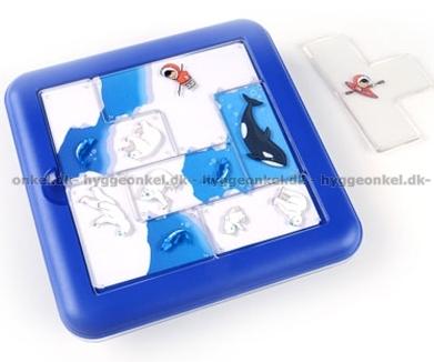 Uppgiften är att placera brickorna så att isbjörnarna står på isen medan fiskarna och späckhuggaren befinner sig i vattnet.