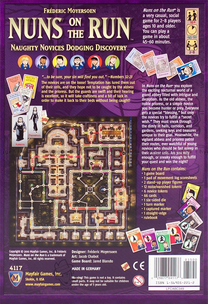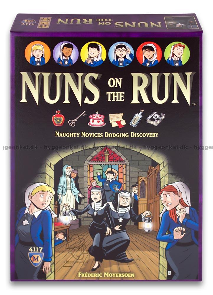 Nuns on the Run kan bäst beskrivas som ett slags omvänt Scotland Yard. Här ska spelarna ta på sig rollen som antingen nunna eller abbedissa.