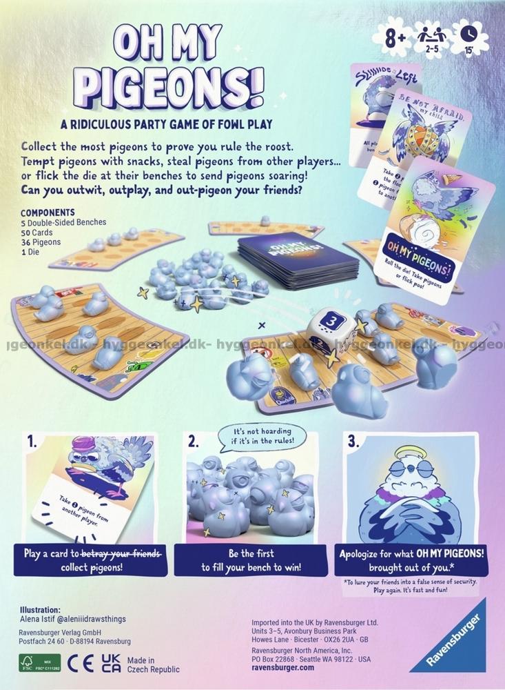 Oh My Pigeons! är ett galet och skrattframkallande partyspel där du och dina vänner tävlar om att samla flest duvor på era bänkar.