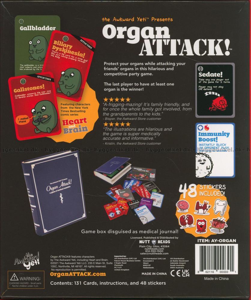 Några kort, exempelvis "benign tumor" (godartad tumör) kan användas på alla organ medan andra attack-kort är begränsade till färre organ.
