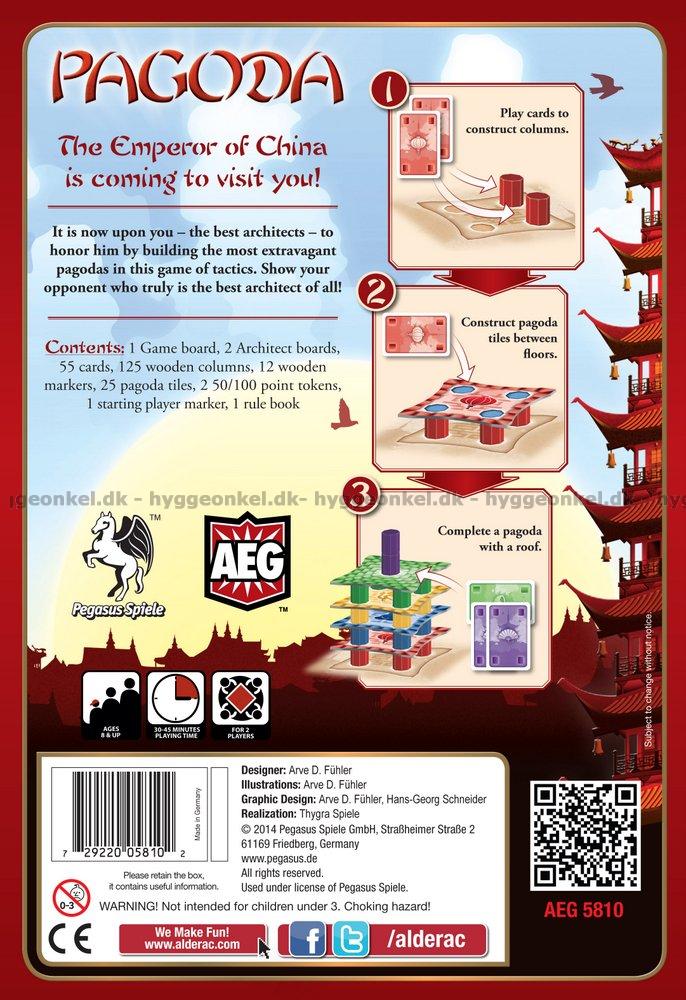 In Pagoda, two players compete to build the layers which make up six pagodas.