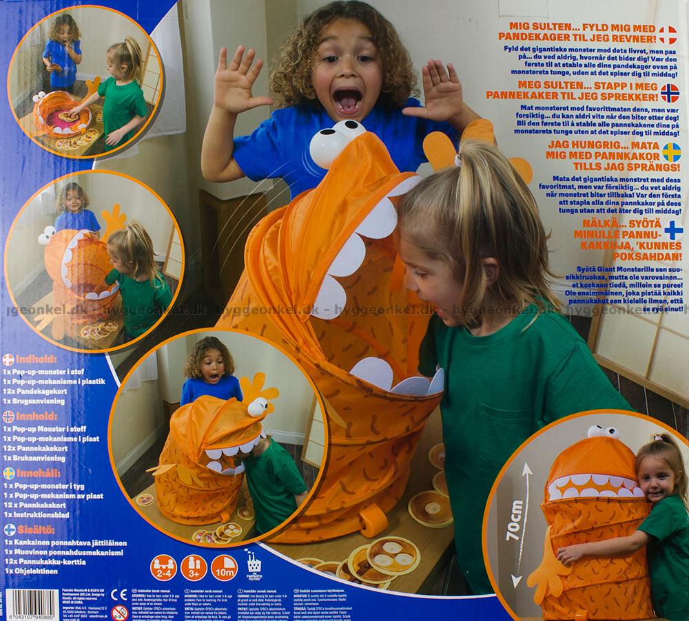 Pannkakorna ska placeras inne i munnen på monstret. Om du lyckas utan att monstret hoppar upp är det nästa spelares tur.