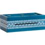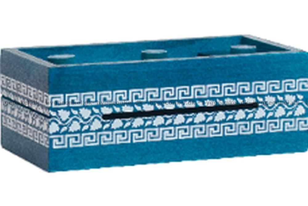 Lådan är i trä. Den mäter cirka 15 x 8 x 5,5 cm.
