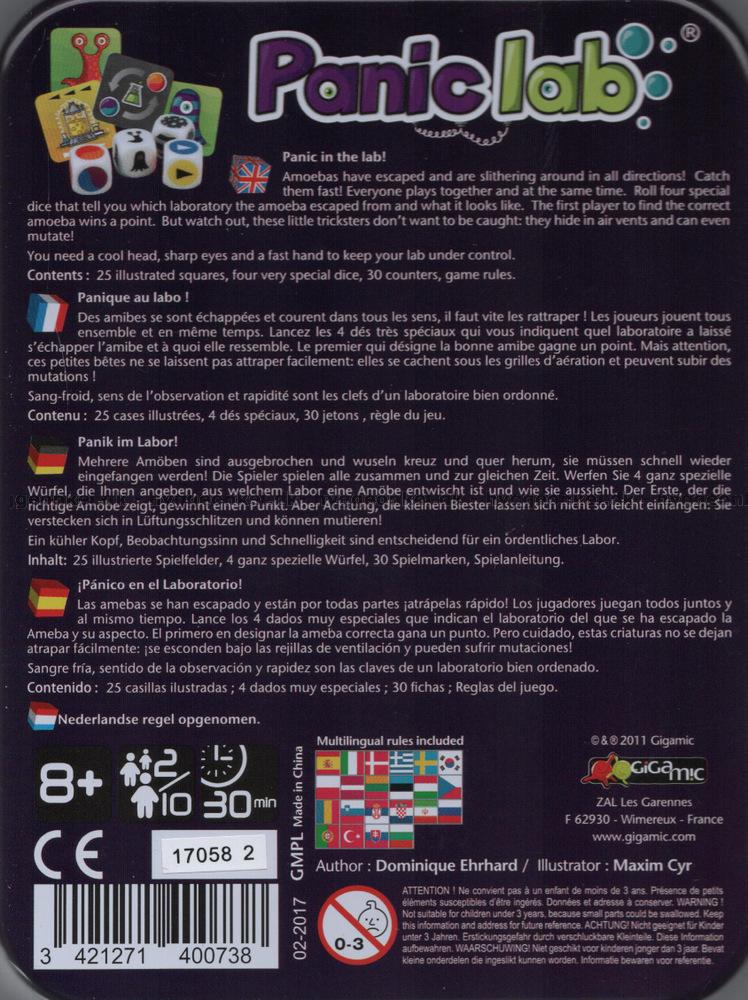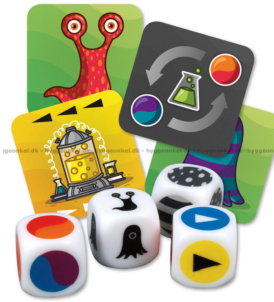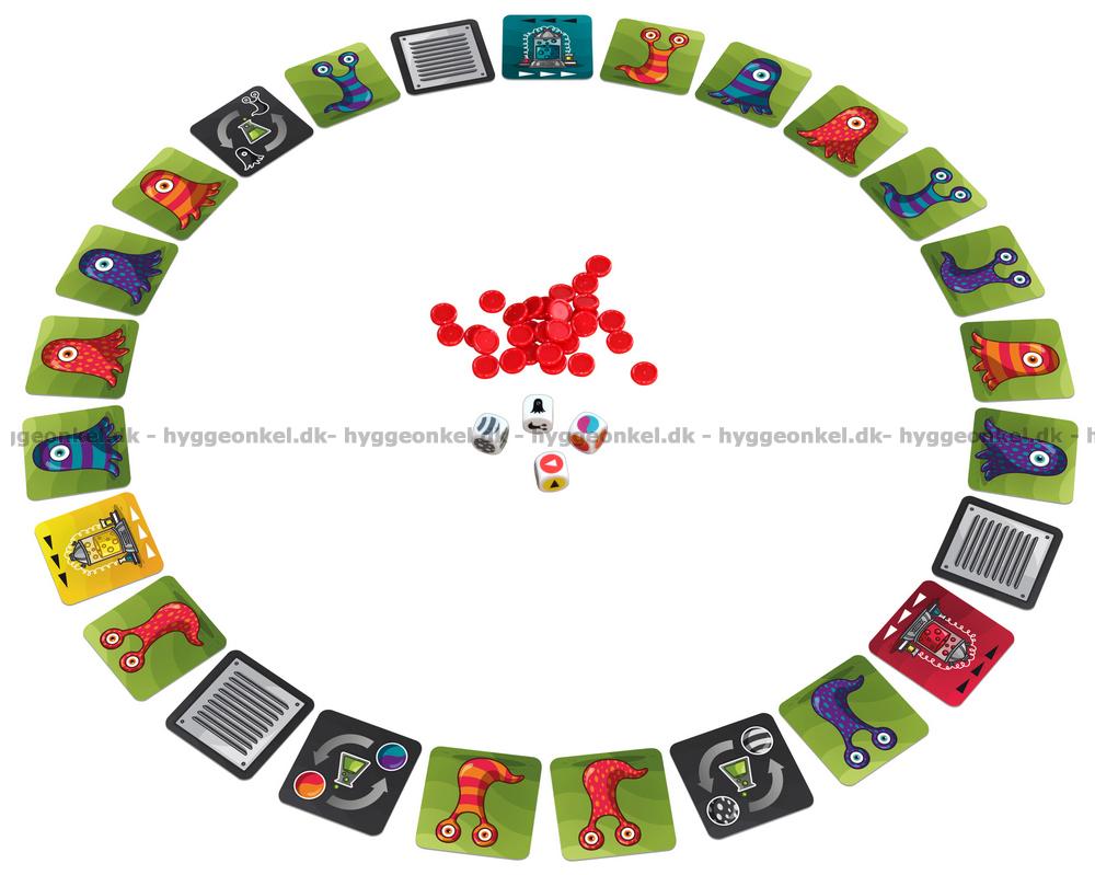 Spelet börjar med att 25 kort placeras i en cirkel. Spelarna ska i tur och ordning kasta fyra tärningar som visar färg, form och mönster på den amöba man försöker att hitta, samt färgen på det laboratorium från vilket den försvann i tillägg till riktning för flykten.