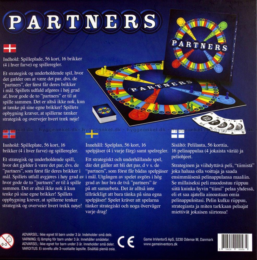 Kravet om att man ska vara precis 4 spelare gäller dock inte i de två nyare utgåvorna av Partners – Duo eller Plus. Här kan man spela 2 respektive 6 personer. Så nu finns (nästan) ett Partners-spel för alla.I boxen hittar du 4 x 4 pjäser, ett set specialkort (56 stycken) och ett spelbräde. Givetvis levereras spelet med svenska spelregler.